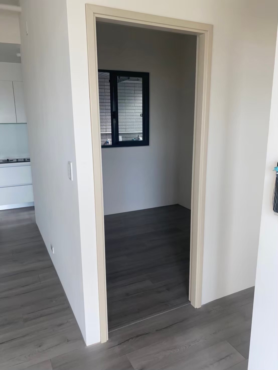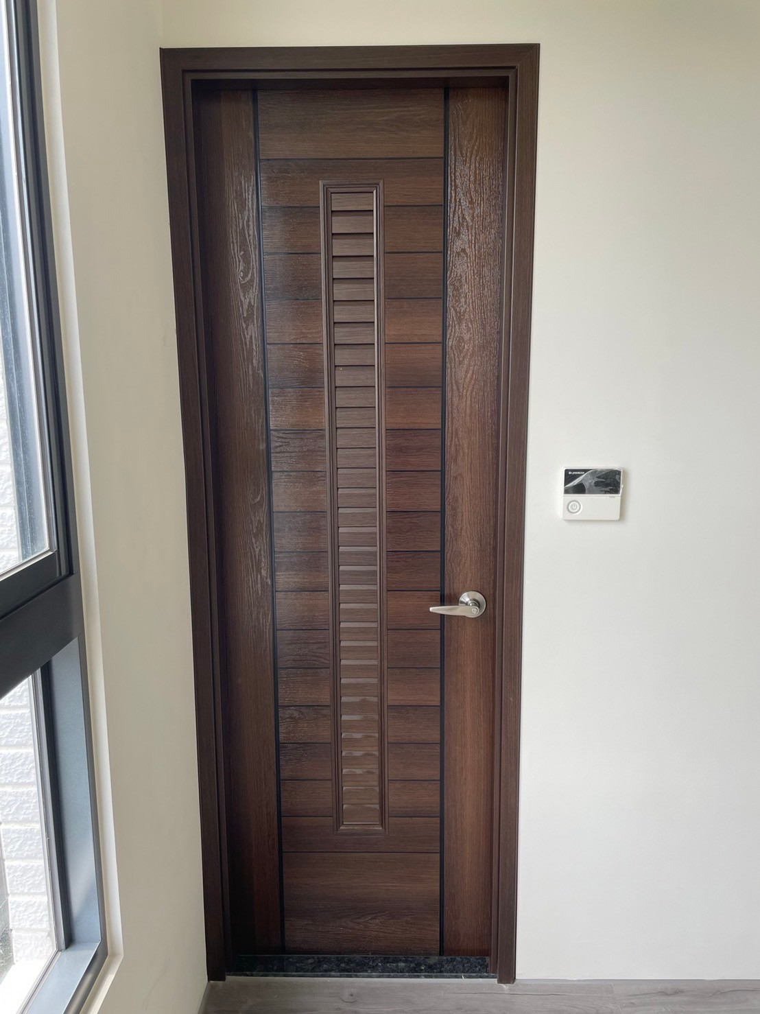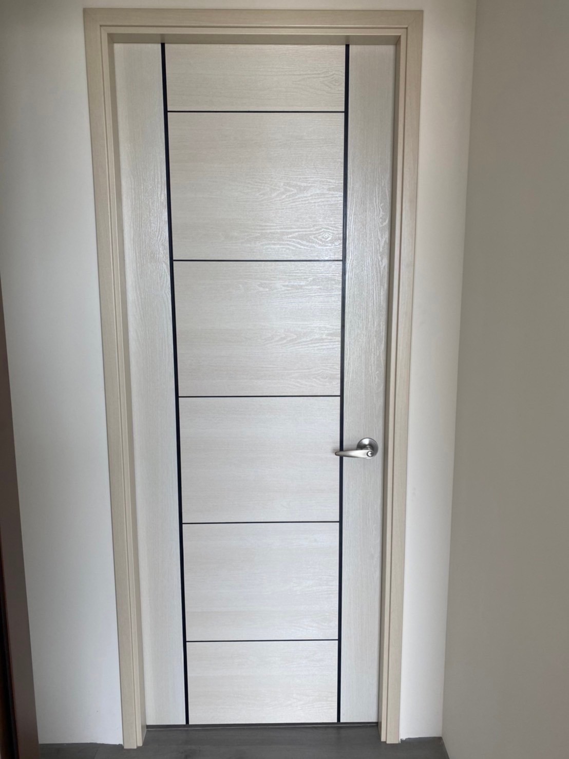 位於彰化員林的住宅,這次施作的是房間及浴室,房間的部分使用我們最熱門的框形樣式,配合整體牆壁色系使用白像色,使空間視覺感看起來更加寬敞。浴室的門片使用的是小格的拼接,中間加上長條百葉,跳脫以往普遍的PVC門片樣式,使人眼前一亮,既美觀又可達到通風效果。